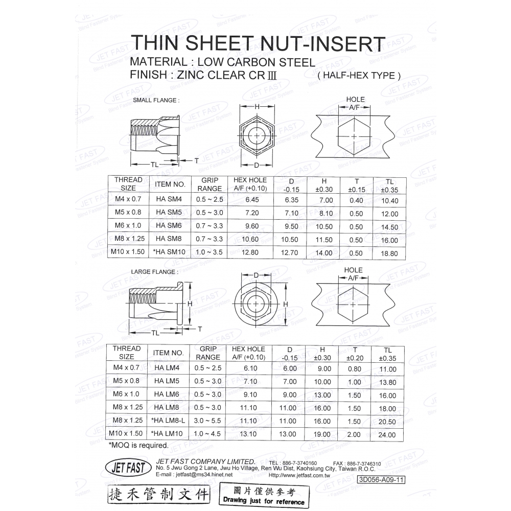 - Metal Rivet Nut - Steel - Half Hex. (HA)