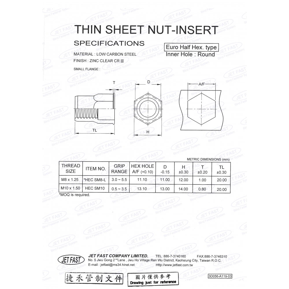 - Metal Rivet Nut - Steel - Half Hex. (HEC)