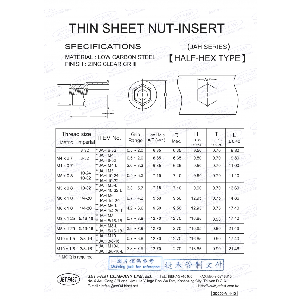- Metal Rivet Nut - Steel - Half Hex. (JAH)