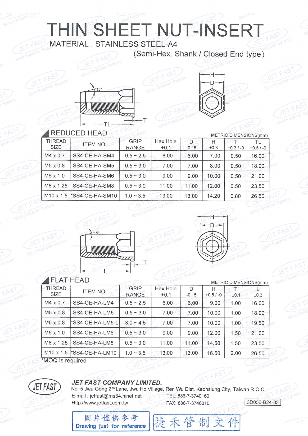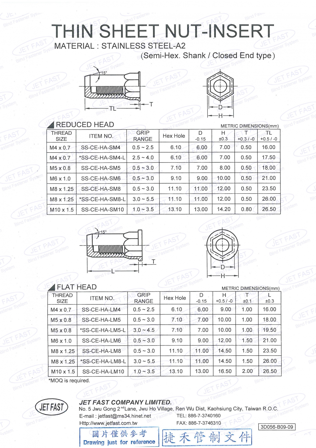 Metal Rivet Nut - SS A2/A4 - Closed End Type (SS-CE-HA) Metal Rivet Nut - SS A2/A4 - Closed End Type (SS-CE-HA)