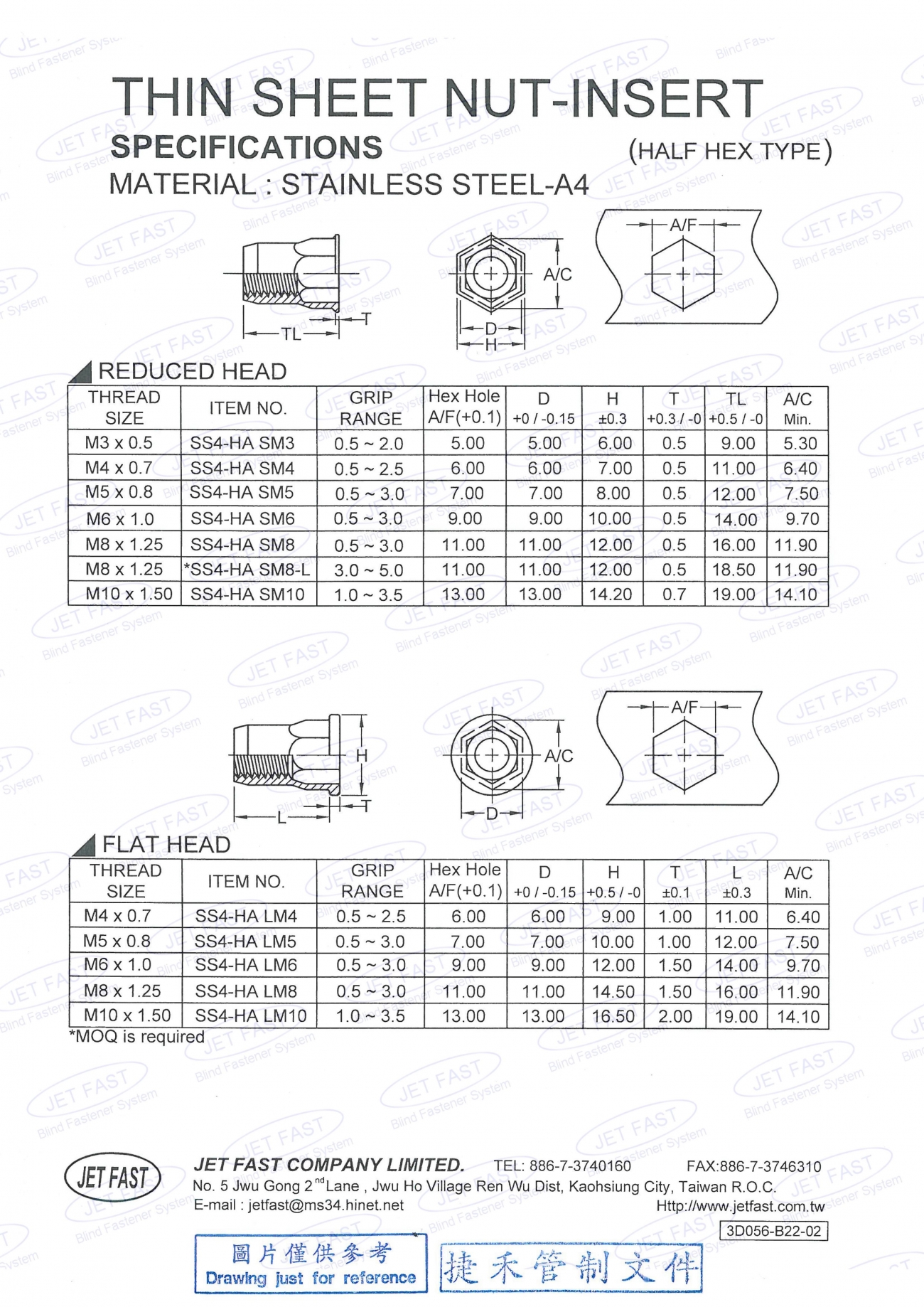 MOREMetal Rivet Nut - SS A2/A4 - Closed End Type (SS-CE-HA) - Metal Rivet Nut - SS A2/A4 - Half Hex. (SS-HA) Metal Rivet Nut - SS A2/A4 - Half Hex. (SS-HA)