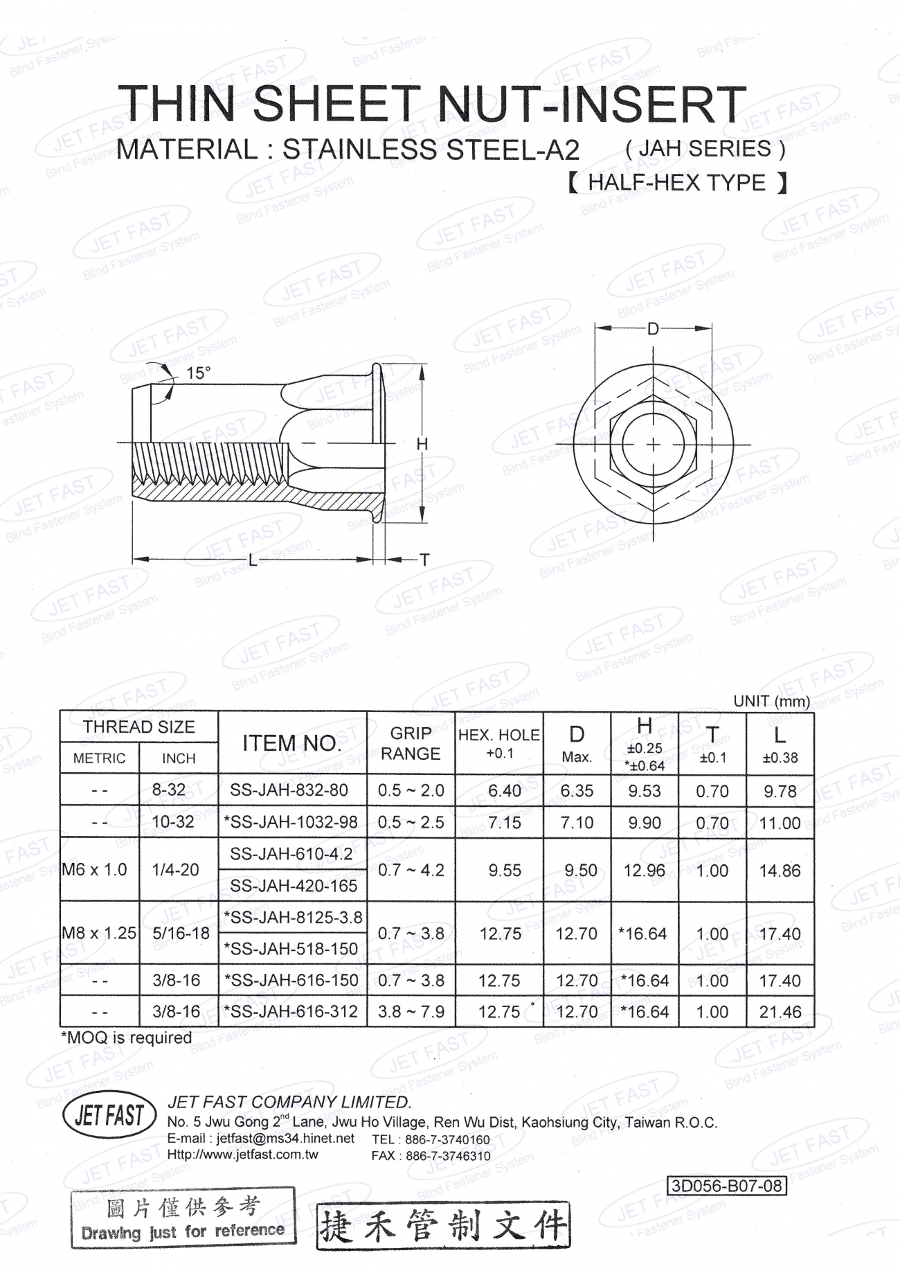 MORECOPY-Metal Rivet Nut - SS A2 - Half Hex. (SS-JAH) -