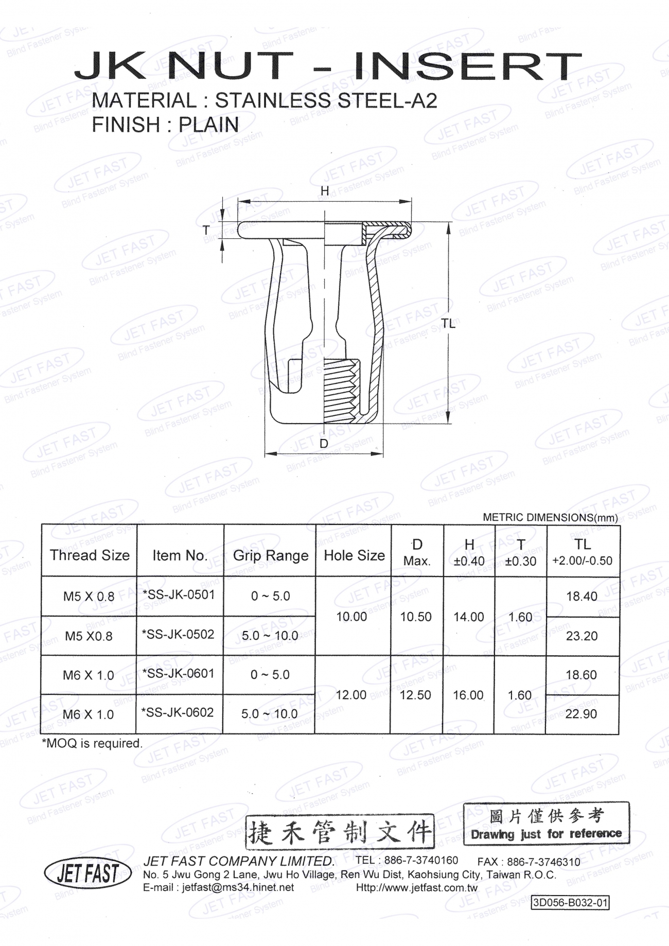 Metal Rivet Nut - SS A2 - Expansion Type (SS-JK)