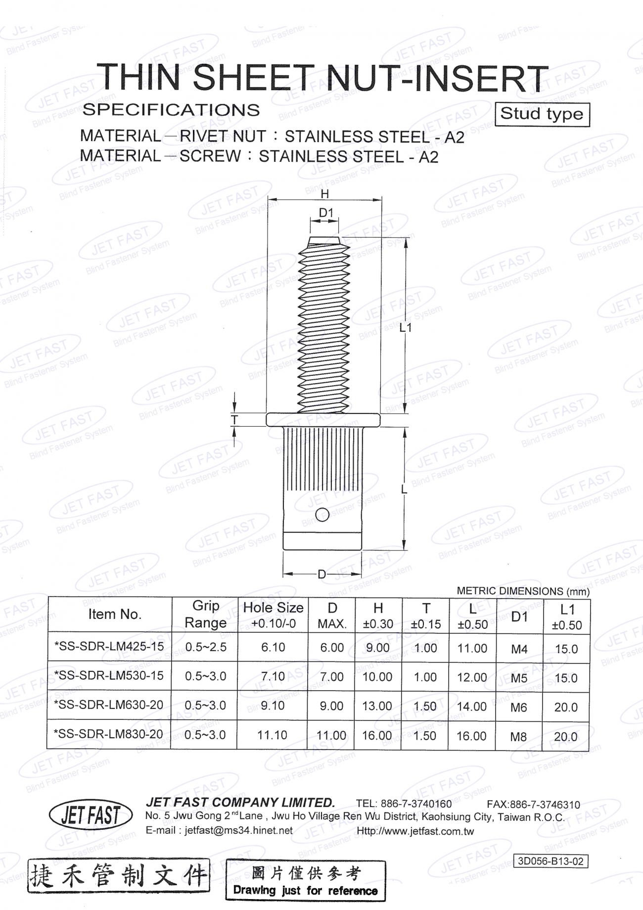 MOREMetal Rivet Nut - SS A2 - Expansion Type (SS-JK) - Metal Rivet Nut - SS A2 - Stud Type (SS-SDR)